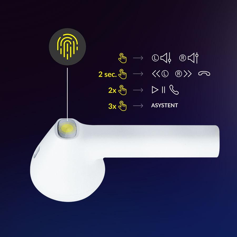 MovePods są proste w obsłudze, dzięki czemu bez problemu odbierzesz, odrzucisz lub zakończysz połącznie nawet, gdy pędzisz na rowerze lub ćwiczysz na siłowni. Wbudowany panel dotykowy w każdej słuchawce pozwala wygodnie sterować dźwiękiem w każdej sytuacji. Łatwe w obsłudze i niezawodne – takie właśnie są MovePods.