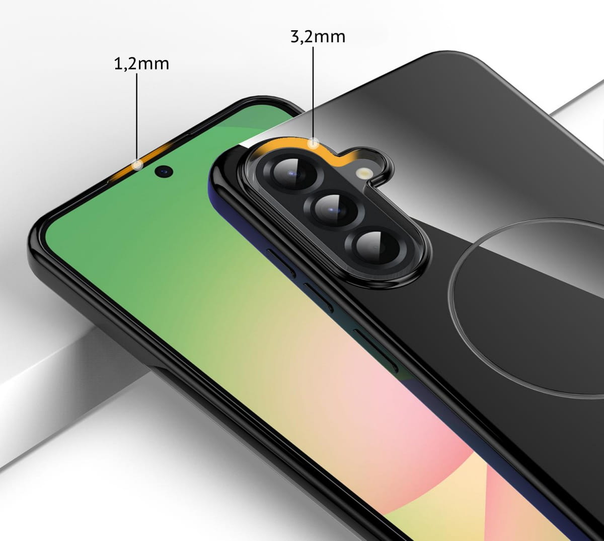 Etui zostało zaprojektowane z myślą o pełnej ochronie – posiada podwyższony rant ochronny wokół tylnego aparatu, chroniący soczewki przed uszkodzeniami. Mimo solidnej ochrony, etui pozostaje cieńkie, lekkie i nie pogrubia telefonu, co zapewnia komfort użytkowania na co dzień.