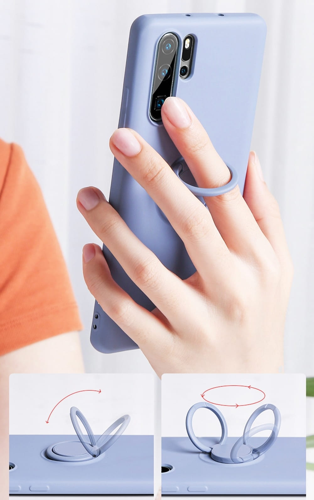 Etui zostało wyposażone w pierścień na palec, który nie tylko zapewnia pewny chwyt podczas korzystania z telefonu, ale także umożliwia postawienie urządzenia w pozycji horyzontalnej, idealnej do oglądania filmów czy przeglądania stron internetowych. Etui jest również kompatybilne z uchwytami magnetycznymi, umożliwiając wygodne montowanie telefonu w np. w samochodzie.