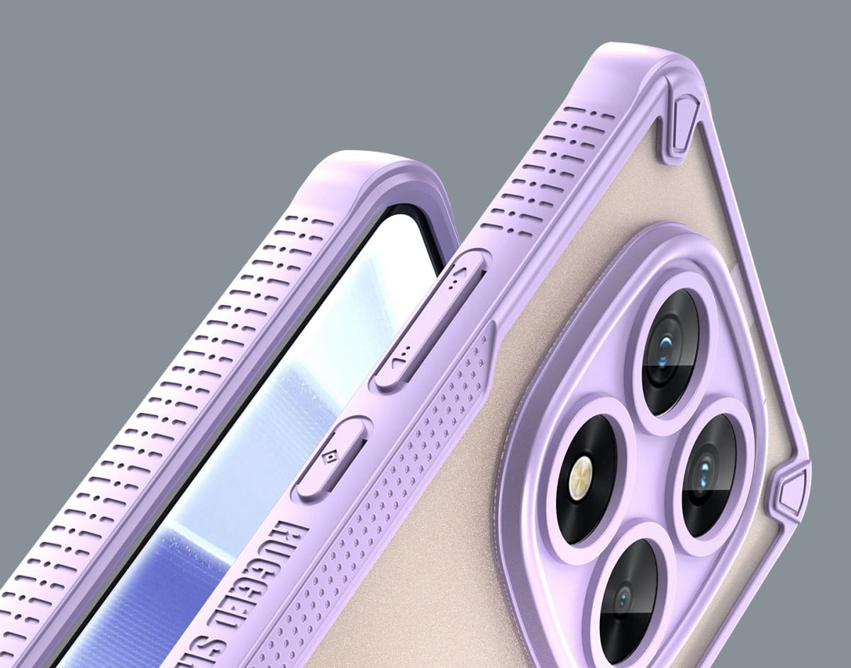 Matowe, półprzezroczyste plecki nadają etui elegancki wygląd, a antypoślizgowa struktura zapewnia pewny chwyt, redukując ryzyko przypadkowego wyślizgnięcia się telefonu z dłoni. Podwyższone ranty dodatkowo chronią ekran oraz aparat przed zarysowaniami, nawet gdy telefon leży ekranem do dołu. Zintegrowane przyciski zwiększają komfort użytkowania, nie ograniczając funkcjonalności urządzenia.
