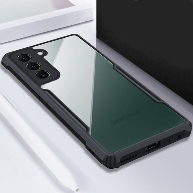 - Hybrydowa konstrukcja (boki elastyczne TPU + plecki twardy Acrylic)