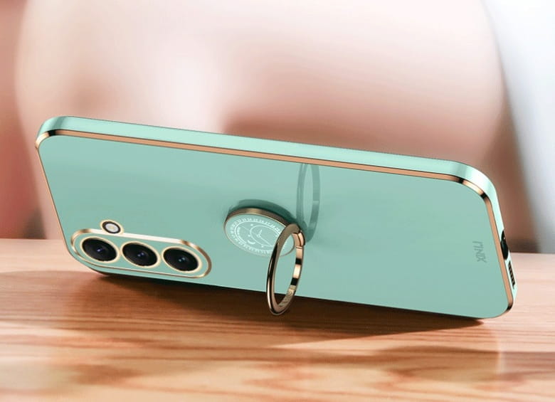 - Nakładka wyposażona w dodatkowy pierścień umożliwiający zaczepienie telefonu na palcu lub ułożenie telefonu w pozycji horyzontalnej