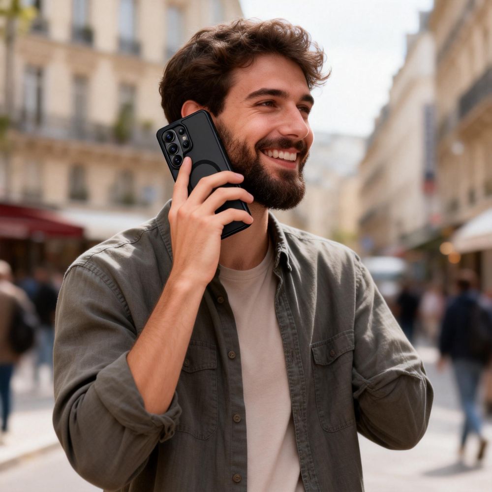 Podniesiona forma obudowy wokół aparatu i ekranu chroni najbardziej wrażliwe elementy przed kontaktem z powierzchnią płaską. Wbudowany pierścień magnetyczny zapewnia pełną kompatybilność z technologią MagSafe, umożliwiając szybkie bezprzewodowe ładowanie oraz wykorzystanie magnetycznych akcesoriów. Precyzyjne wycięcia gwarantują pełny dostęp do wszystkich portów, przycisków i głośników.