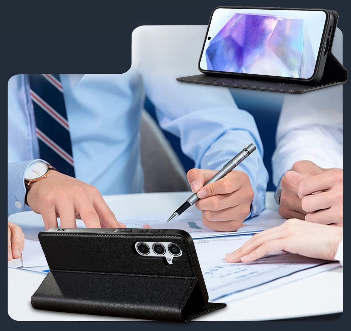 Funkcja podtrzymywania: Futerał umożliwia ułożenie telefonu w pozycji horyzontalnej, co jest idealne do oglądania filmów, czytania e-booków lub prowadzenia wideokonferencji. To zapewnia wyjątkową wygodę w codziennym użytkowaniu.
