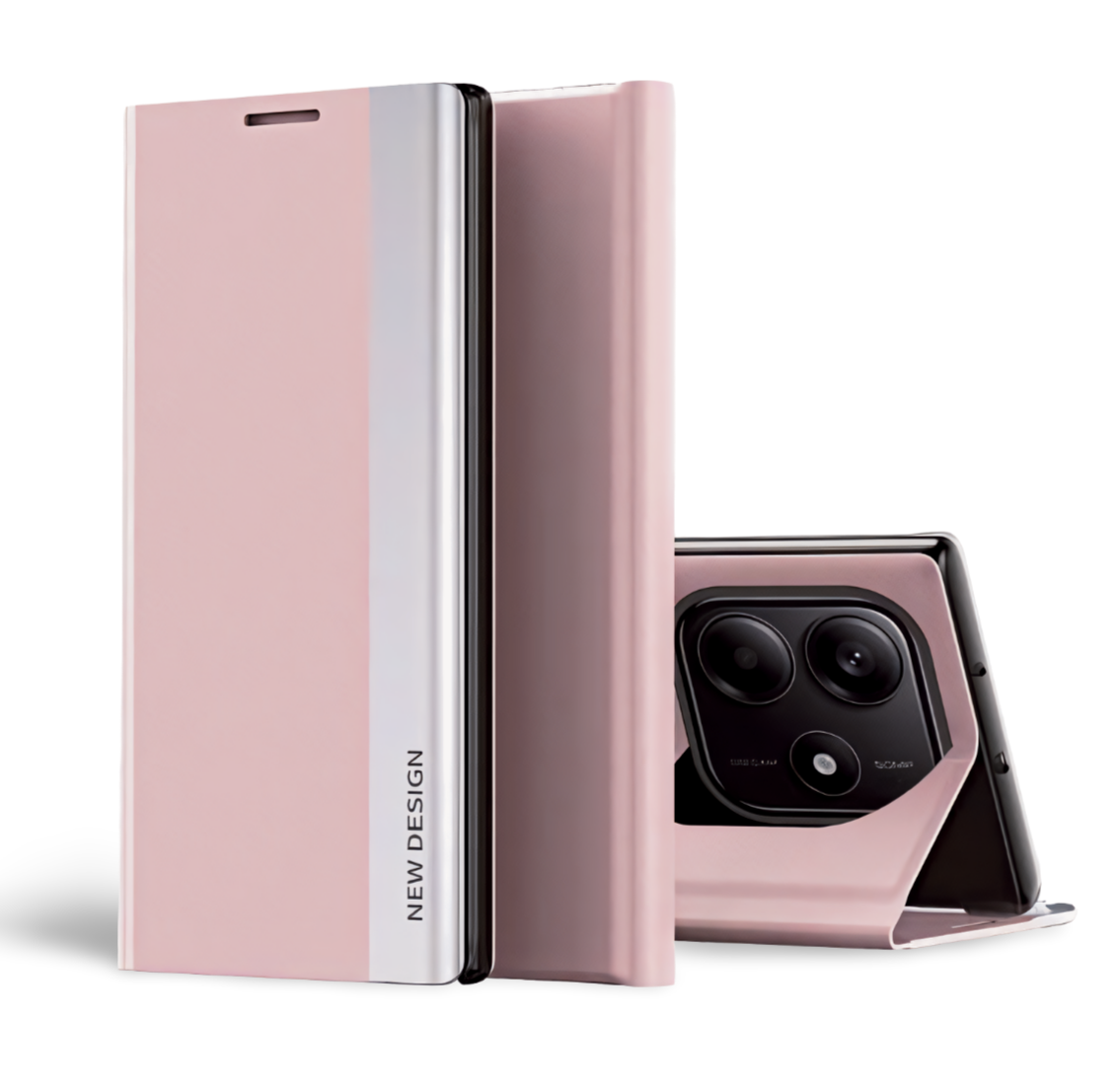 Etui z klapką Leather New do Xiaomi Redmi Note 14 5G - Różowy