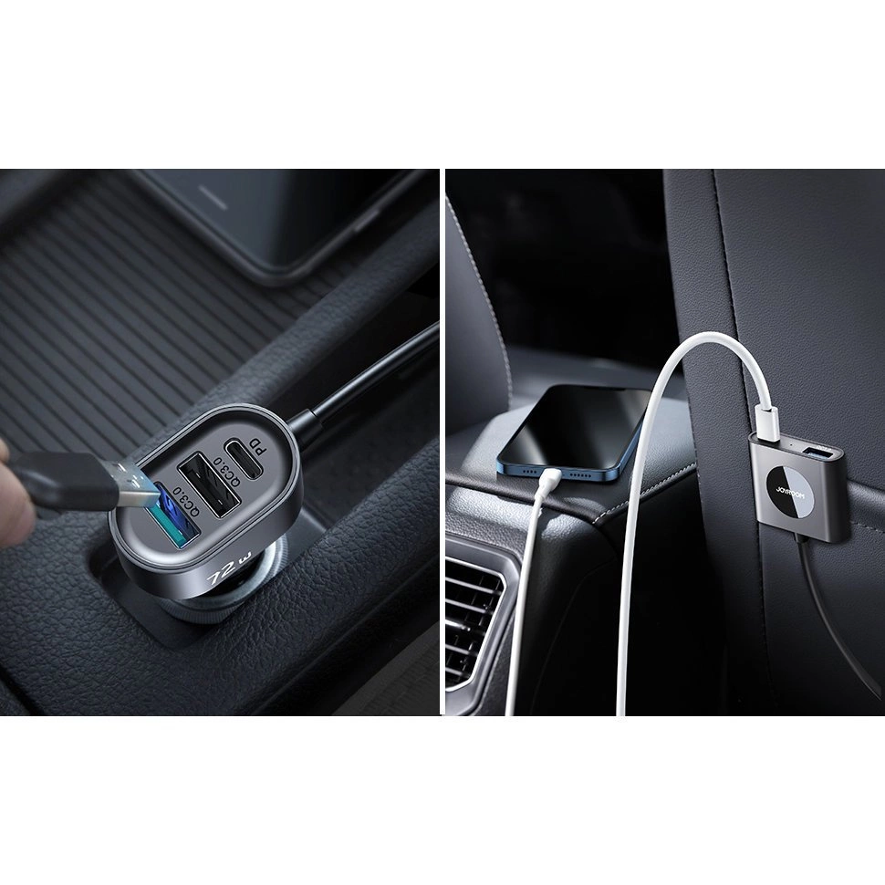 Ładowarka samochodowa 2xPD + 2xQC3.0 72W 1,5m Joyroom JR-CL05