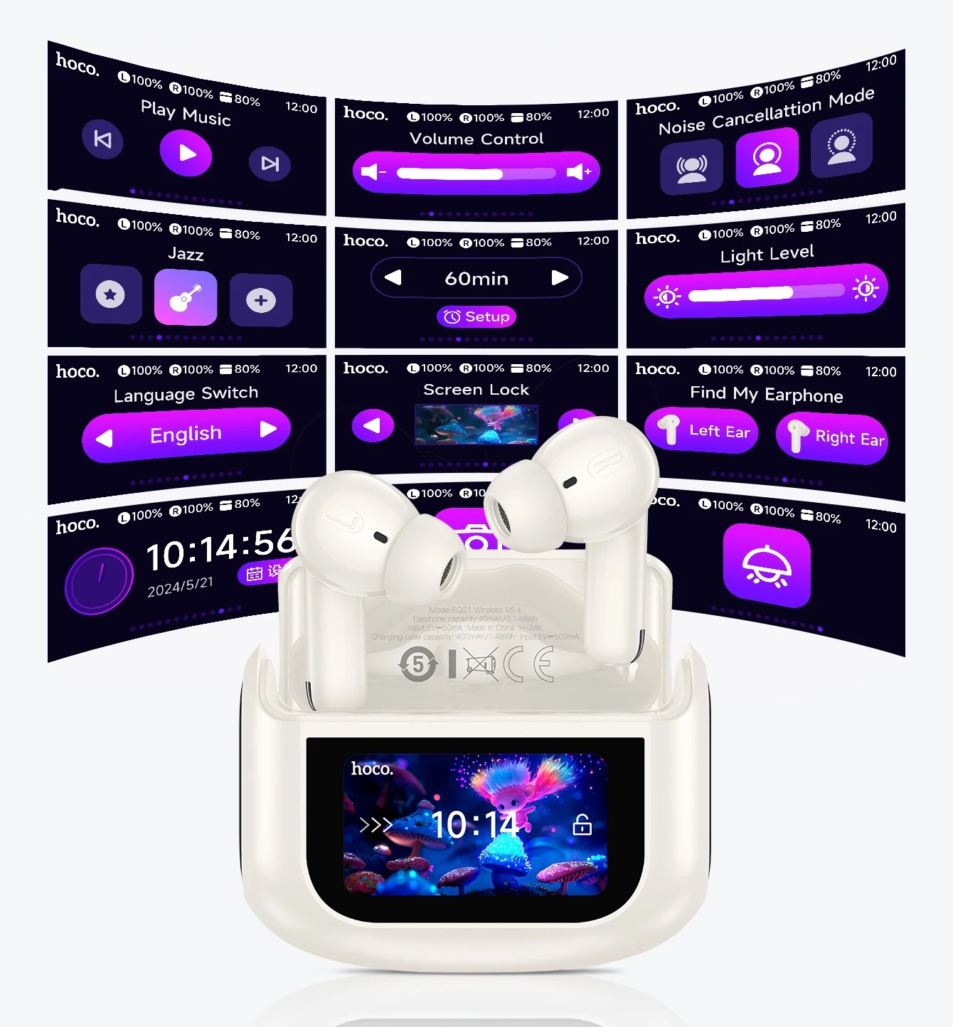 Słuchawki bezprzewodowe douszne Hoco z ekranem TWS ANC ENC EQ21